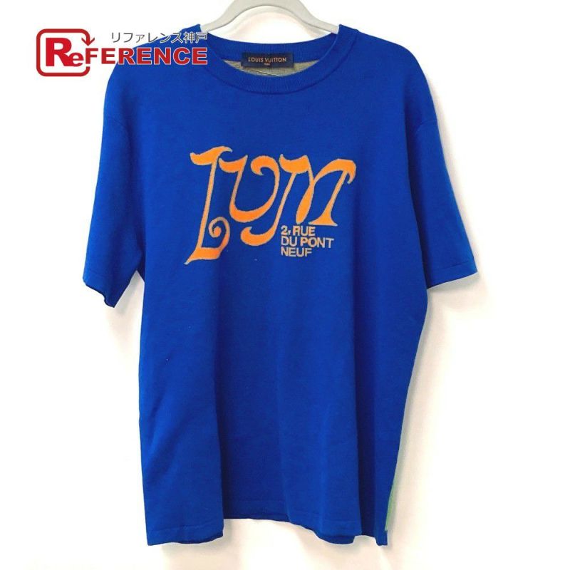 【美品】ルイヴィトン 青色 LOUIS VUITTON ルイヴィトン 21SS LVMインターシャ クルーネックニット トップス アパレル RM211M 半袖Tシャツ コットン メンズ ブルー 【中古】