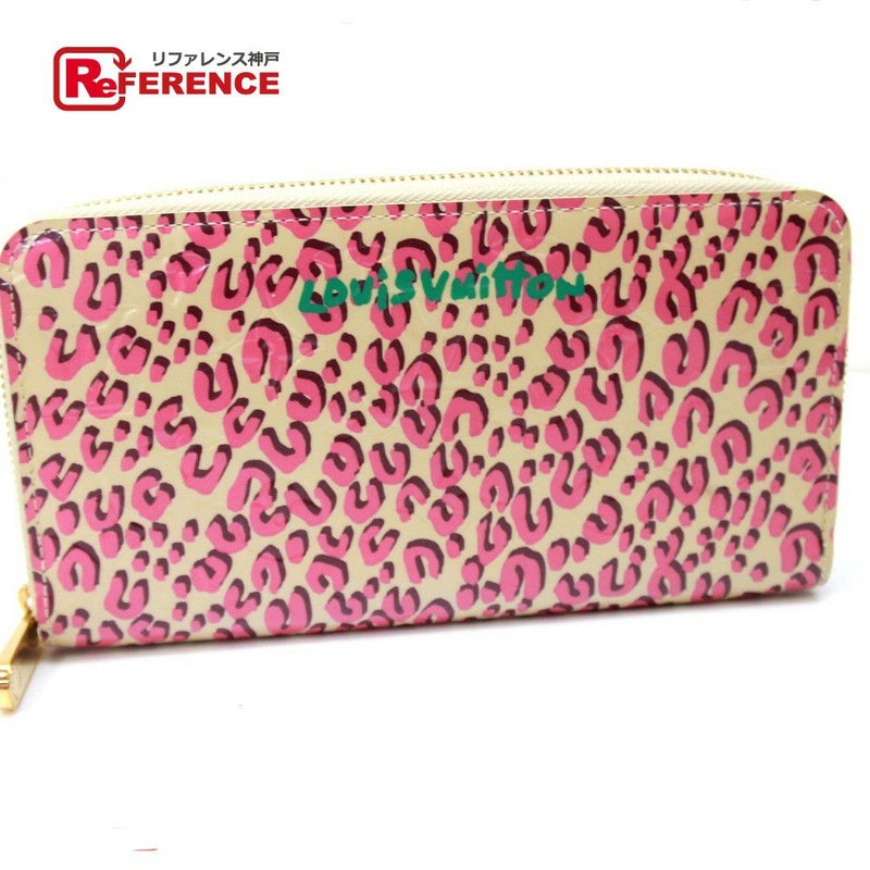 【中古良品】ルイヴィトン LOUIS VUITTON ルイヴィトン M91476 ヴェルニ レオパード ジッピーウォレット ラウンドファスナー 長財布 長財布 パテントレザー レディース ブロンコライユ ピンク 【中古】