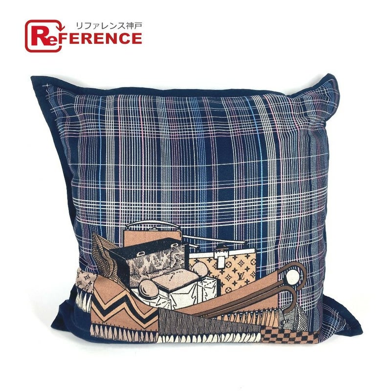 【新品同様】ルイヴィトン 紺色 LOUIS VUITTON ルイヴィトン MP2101 モノグラム チェック柄 ピロー 枕 インテリア クッション ウール /シルク メンズ ネイビー 新品同様 【中古】