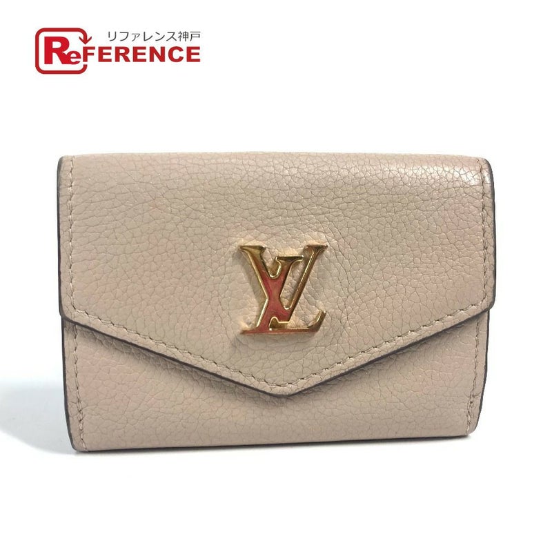 ルイヴィトン 薄茶色 LOUIS VUITTON ルイヴィトン M69340 LVロゴ ポルトフォイユ・ロックミニ コンパクトウォレット 3つ折り財布 カーフレザー ユニセックス グレージュ ベージュ 【中古】