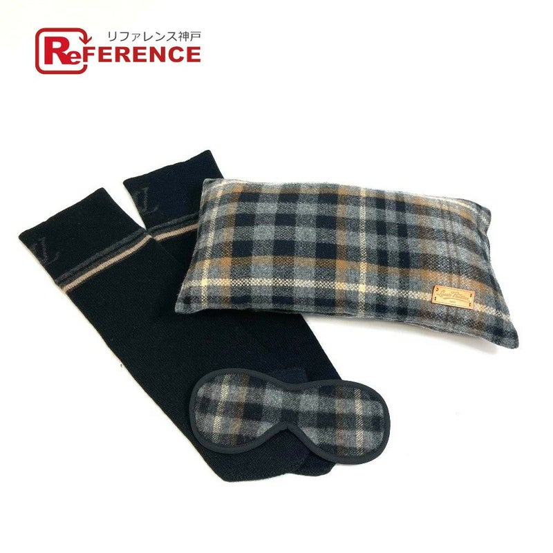 【中古良品】ルイヴィトン LOUIS VUITTON ルイヴィトン R99136 チェック アイマスク 枕 靴下 3点 トラベルセット クッション ウール ユニセックス グレー系 【中古】