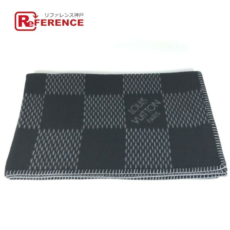 【新品同様】ルイヴィトン 黒色 LOUIS VUITTON ルイヴィトン M76561 ダミエグラフィットジャイアント クヴェルテュールダミエクラシック インテリア ひざかけ 毛布 ブランケット ウール/カシミヤ ユニセックス ブラック 新品同様 【中古】