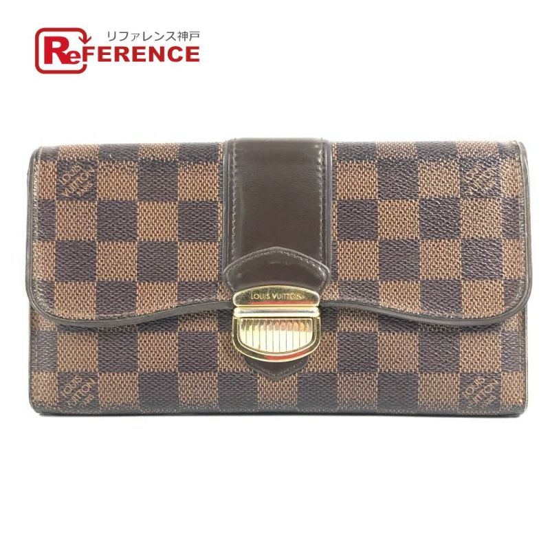 ルイヴィトン 茶色 LOUIS VUITTON ルイヴィトン N61747 ダミエ ポルトフォイユ・システィナ フラップ 2つ折り ロングウォレット 長財布 ダミエキャンバス ユニセックス エベヌ ブラウン 【中古】