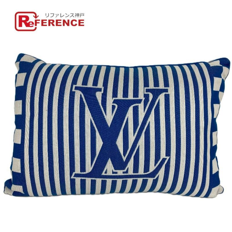 【未使用】ルイヴィトン 青色 LOUIS VUITTON ルイヴィトン クッション LVロゴ ストライプ ピロー 枕 インテリア クッション コットン レディース ブルー 未使用 【中古】