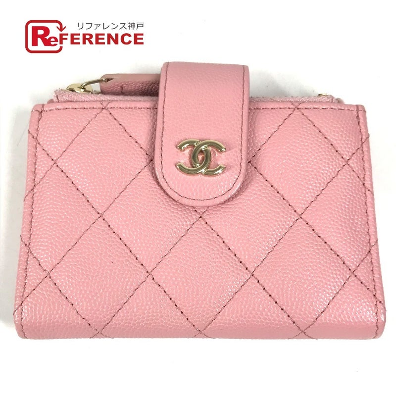 【中古良品】シャネル CHANEL シャネル AP1928 CC ココマーク ロゴ キルティング マトラッセ ダブルジップカードケース コンパクトウォレット 名刺入れ パスケース 小銭入れ 財布 コインケース キャビアスキン ユニセックス ピンク 【中古】