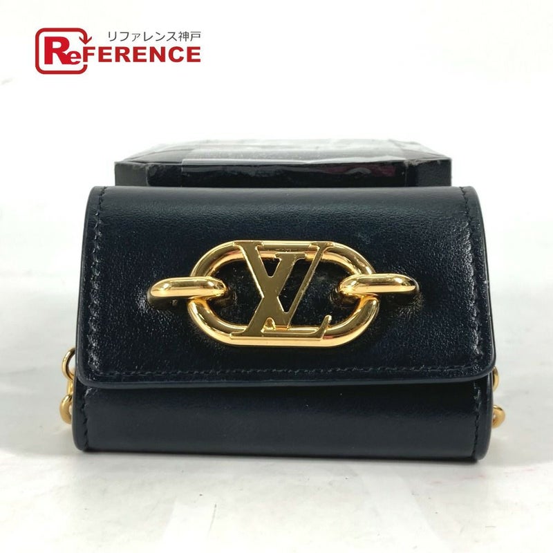 【美品】ルイヴィトン 黒色 LOUIS VUITTON ルイヴィトン M00829 チェーン ビジュー サック・イヤホン ホルダー LV リンク airpodsケース エアポッズ イヤフォンケース レザー レディース ブラック 【中古】