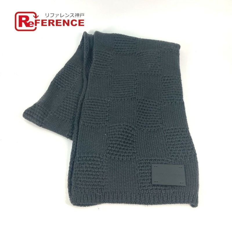 【中古良品】ルイヴィトン LOUIS VUITTON ルイヴィトン レザータグ 革タグ ダミエ マフラー ウール メンズ グレー 【中古】