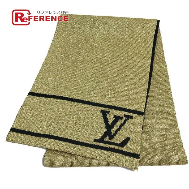 【中古良品】ルイヴィトン 金色 LOUIS VUITTON ルイヴィトン M76167 エシャルプグリッター ファッション小物 防寒具 マフラー ウール レディース ゴールド×ブラック 【中古】