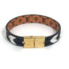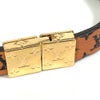 商品説明 片面にはモノトーンカラーの牧歌的な編み込みのカーフレザー、もう片面にはアイコニックなモノグラムがデザインされています。レザーをゴールドでグッと締めた上品さと可愛さを感じるアイテムです。コーディネートにプラスすれば一気に華やかに♪リバーシブルでお使い頂けます。