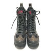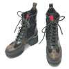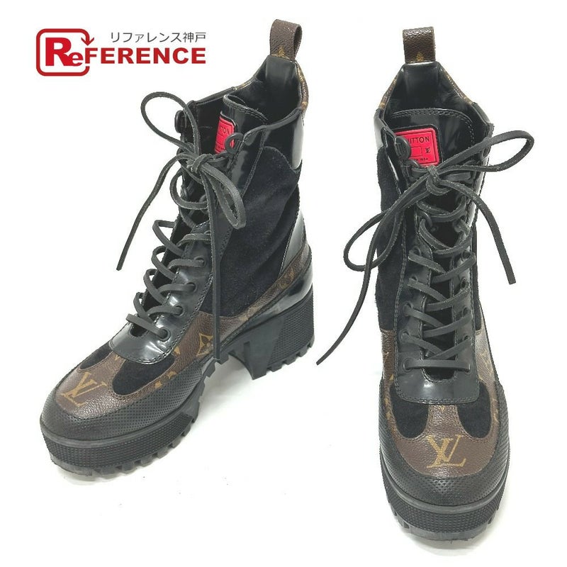 【中古良品】ルイヴィトン 黒色 LOUIS VUITTON ルイヴィトン ローリエート ライン ワッペン 靴 ヒール アンクル ショートブーツ ブーツ スエード レディース ブラック 【中古】
