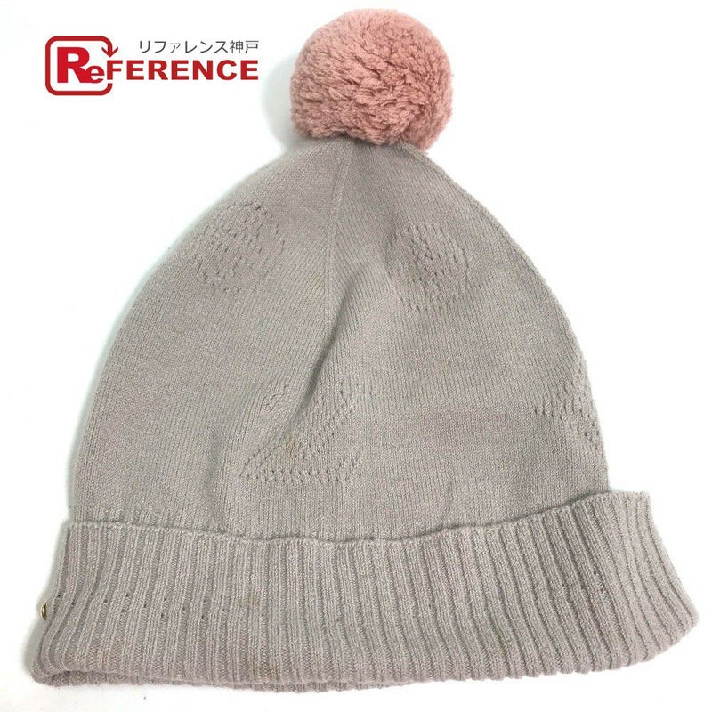 【中古良品】ルイヴィトン 薄茶色 LOUIS VUITTON ルイヴィトン M75540 モノグラム ポンポン付き ビーニー 帽子 ニット帽 ニットキャップ ニット帽 ウール /ナイロン レディース ベージュ 【中古】