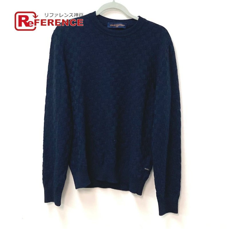 ルイヴィトン 紺色 LOUIS VUITTON ルイヴィトン ダミエ ニット 長袖 トップス アパレル RM222Q セーター ウール メンズ ネイビー 【中古】