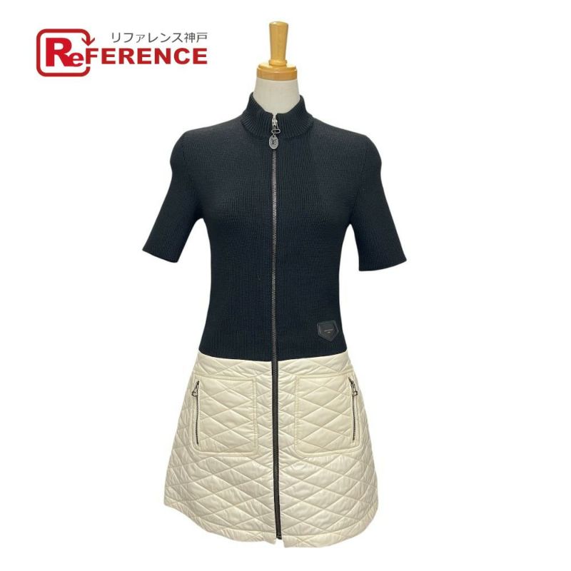 【美品】ルイヴィトン 黒色 LOUIS VUITTON ルイヴィトン ロゴ バイカラー アパレル 半袖 ニット ダウン RW241W ワンピース ウール /ポリアミド レディース ブラック 【中古】