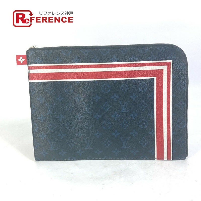【中古良品】ルイヴィトン 紺色 LOUIS VUITTON ルイヴィトン M61679 モノグラム コバルト ポシェットジュールGM ストライプ カバン ポーチ クラッチバッグ キャンバス メンズ ネイビー 【中古】