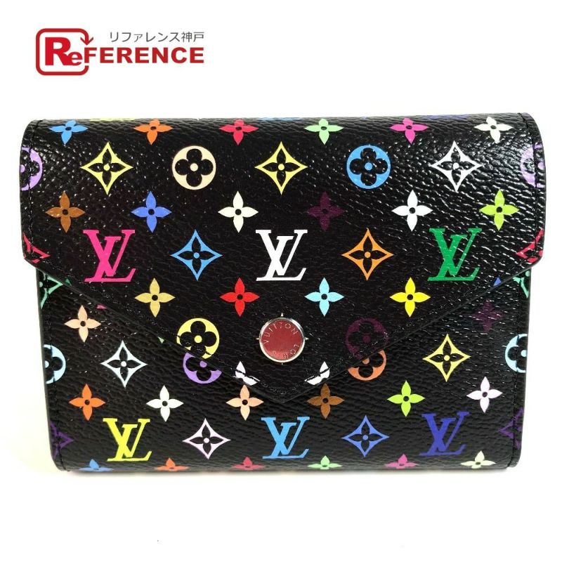 【新品同様】ルイヴィトン 黒色 LOUIS VUITTON ルイヴィトン M14163 モノグラムマルチカラー 村上隆 LV×TM ポルトフォイユ・ヴィクトリーヌ コンパクトウォレット 財布 3つ折り財布 モノグラムマルチカラーキャンバス ユニセックス ノワール ブラック 新品同様 【中古】