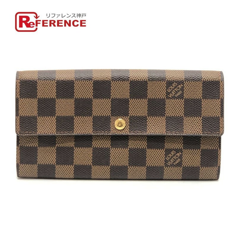 【美品】ルイヴィトン 茶色 LOUIS VUITTON ルイヴィトン N61734 ポルトフォイユ サラ ロングウォレット 財布 二つ折り 長財布 ダミエキャンバス レディース エベヌ ブラウン 【中古】