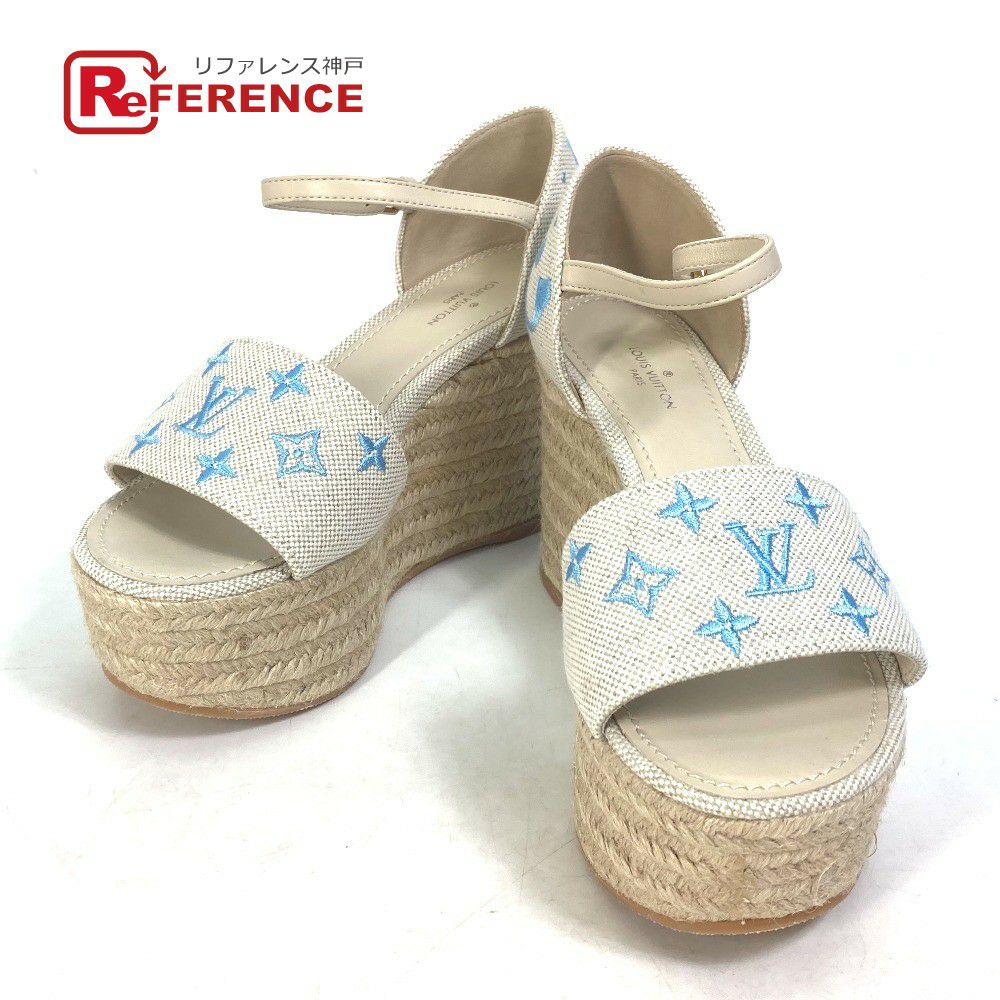 他の画像を見る 【未使用】ルイヴィトン 青色 LOUIS VUITTON ルイヴィトン スターボード・ライン ストラップ付 モノグラム 靴 ウエッジソール サンダル レザー/キャンバス レディース ブルー 未使用 【中古】 未使用品NSランク 通常価格 ¥ 58,300 特別オンライン価格 ¥ 57,200 税込 カートに入れる お気に入りに登録する