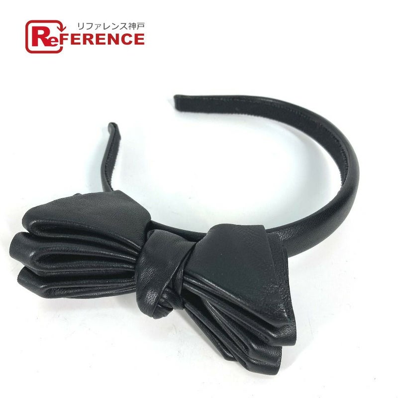 【中古良品】ミュウミュウ 黒色 MIUMIU ミュウミュウ リボン ヘッドバンド ヘアバンド カチューシャ レザー レディース ブラック 【中古】