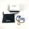 【美品】ミュウミュウ 青色 MIUMIU ミュウミュウ ラインストーン ロゴ ボーダー ヘアアクセサリー ヘアゴム メタル レディース ブルー 【中古】