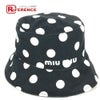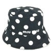 【美品】ミュウミュウ 黒色 MIUMIU ミュウミュウ 5HC196 ロゴ ドット 水玉 ハット帽 帽子 バケットハット ボブハット ハット コットン レディース ブラック 【中古】