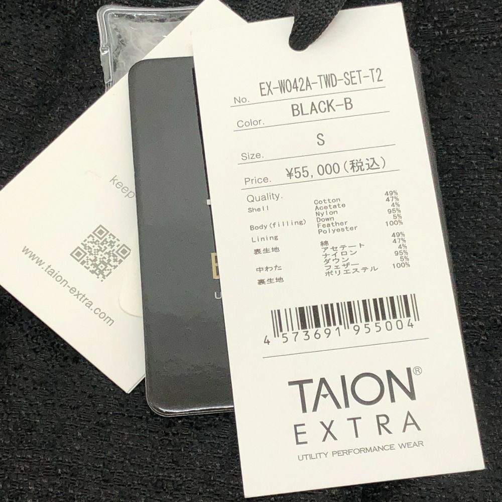 他の画像を見る 【未使用】タイオン 黒色 TAION タイオン EX-W042A-TWD-SET-T2 限定品 タイオンエクストラ ボレロダウンセット TYPE2 アパレル アウター ダウンジャケット ツイード /ナイロン レディース ブラック 未使用 【中古】 未使用品NSランク 通常価格 ¥ 53,900 特別オンライン価格 ¥ 52,000 税込 カートに入れる お気に入りに登録する