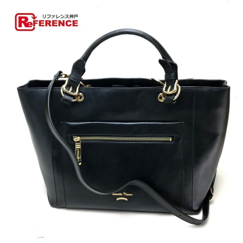 【中古良品】サマンサタバサ 黒色 Samantha Thavasa サマンサタバサ エディターズバッグ カバン 肩掛け ショルダー トートバッグ 合成皮革 レディース ブラック 【中古】