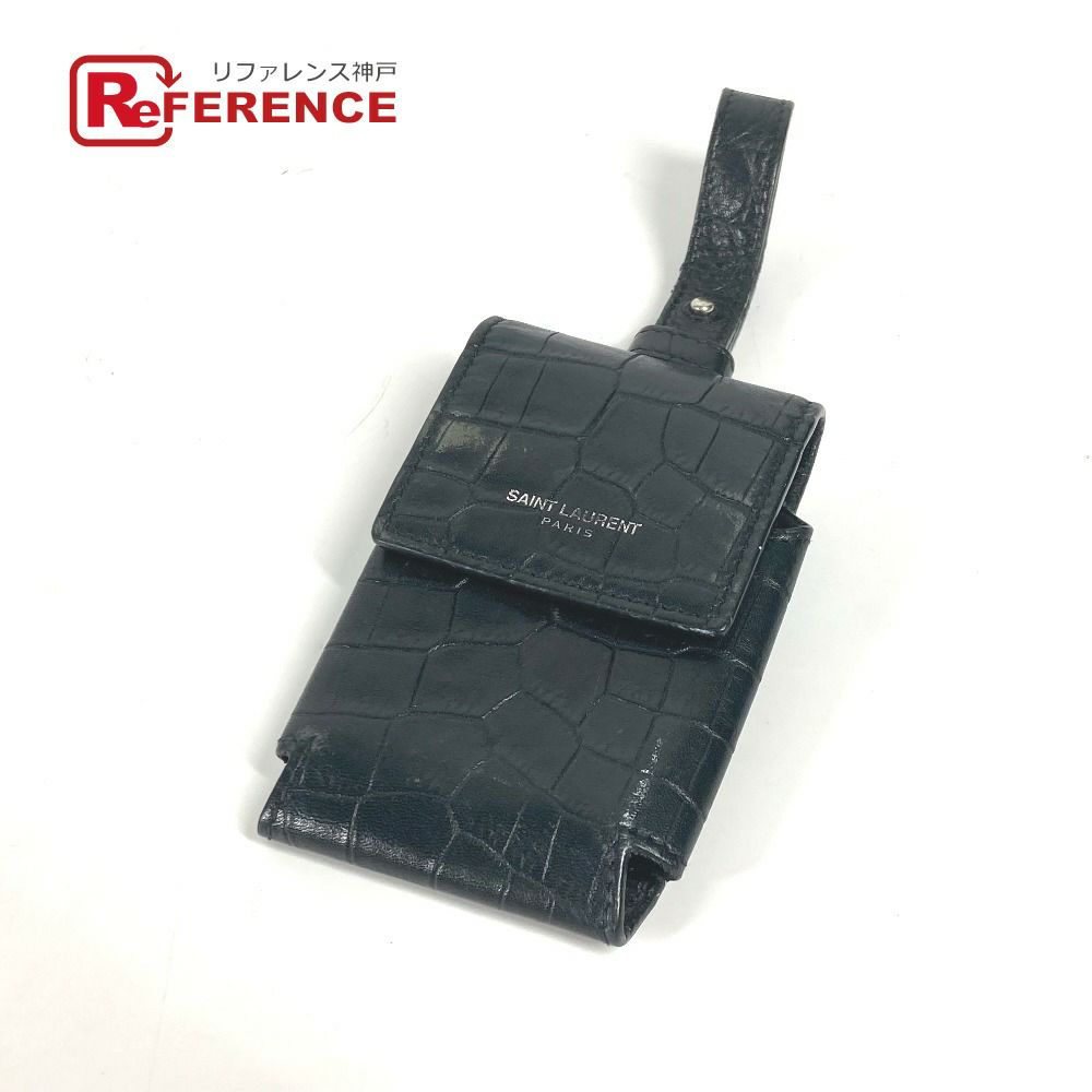 サンローランパリ 黒色 SAINT LAURENT PARIS サンローランパリ ロゴ タバコケース ポーチ シガレットケース レザー メンズ ブラック 【中古】