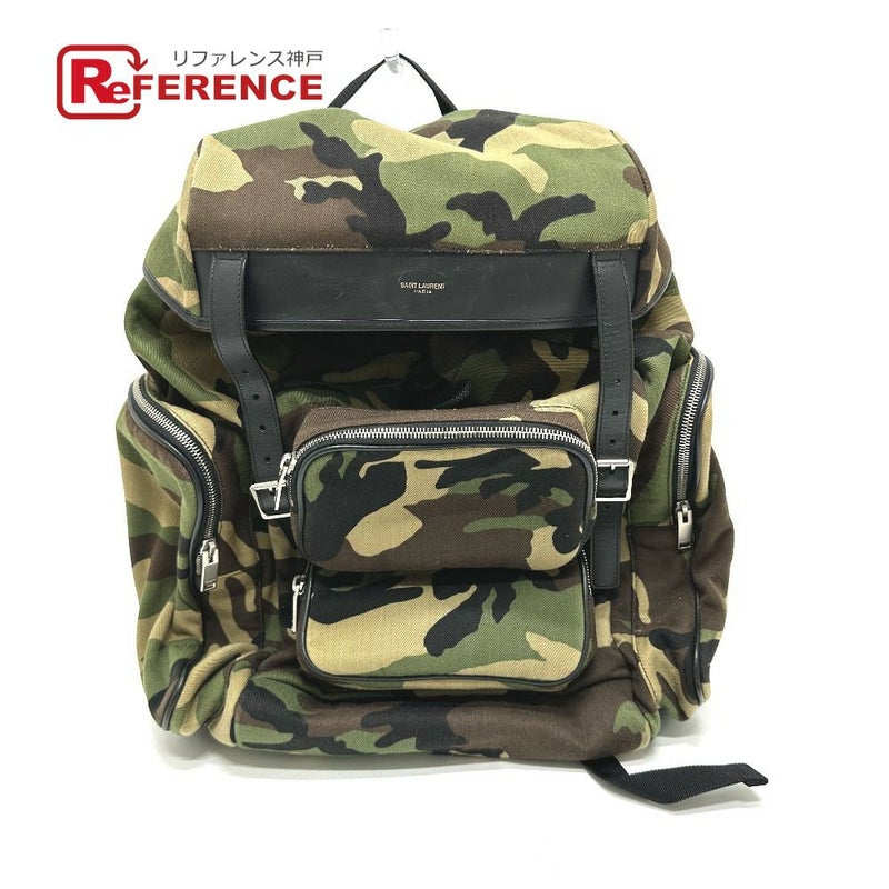 【中古良品】サンローランパリ 緑色 SAINT LAURENT PARIS サンローランパリ 437110 マルチポケット カモフラージュ 迷彩 バックパック カバン リュックサック キャンバス/レザー ユニセックス グリーン 【中古】