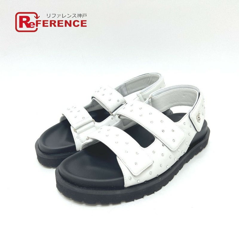 【未使用】セルジオロッシ 白色 Sergio Rossi セルジオロッシ B10490MFL140400 ラインストン ベルト フラット 靴 サンダル レザー レディース ホワイト 未使用 【中古】