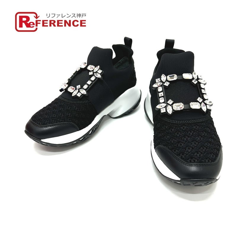 【未使用】ロジェヴィヴィエ 黒色 ROGER VIVIER ロジェヴィヴィエ RVW50624180KO ヴィヴラン ファブリッククリスタル アパレル ストラスバックル スニーカー キャンバス レディース ブラック 未使用 【中古】