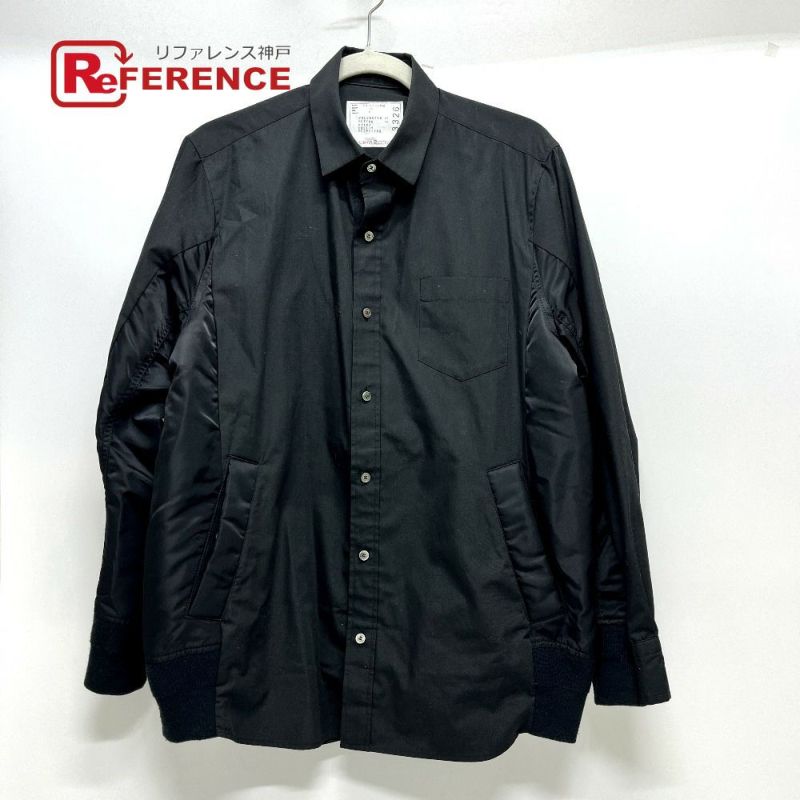 【中古良品】サカイ 黒色 Sacai サカイ 24-03326M 2024年春夏 COTTON OXFORD NYLON TWILL SHIRT トップス シャツ 長袖 アパレル 長袖シャツ コットン メンズ ブラック 【中古】