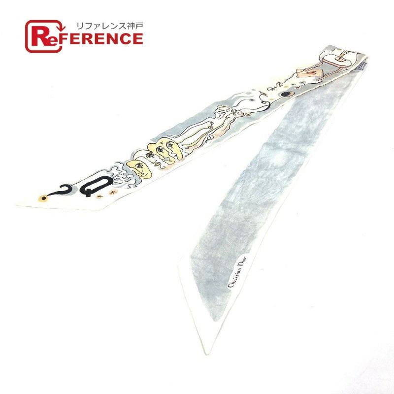 ディオール 白色 Dior ディオール イニシャル ロゴ Q ミッツア バンドースカーフ スカーフ シルク レディース ホワイト 【中古】