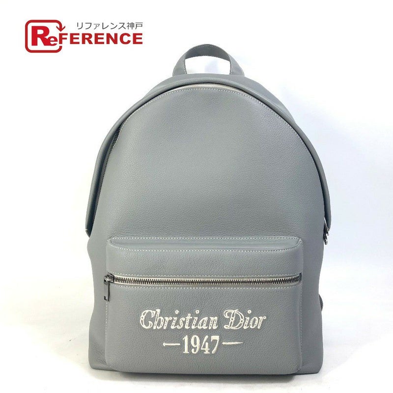 【美品】ディオール Dior ディオール 1ESBA088NFS ライダー RIDER1947ロゴ バックパック カバン リュックサック カーフスキン メンズ グレー 【中古】