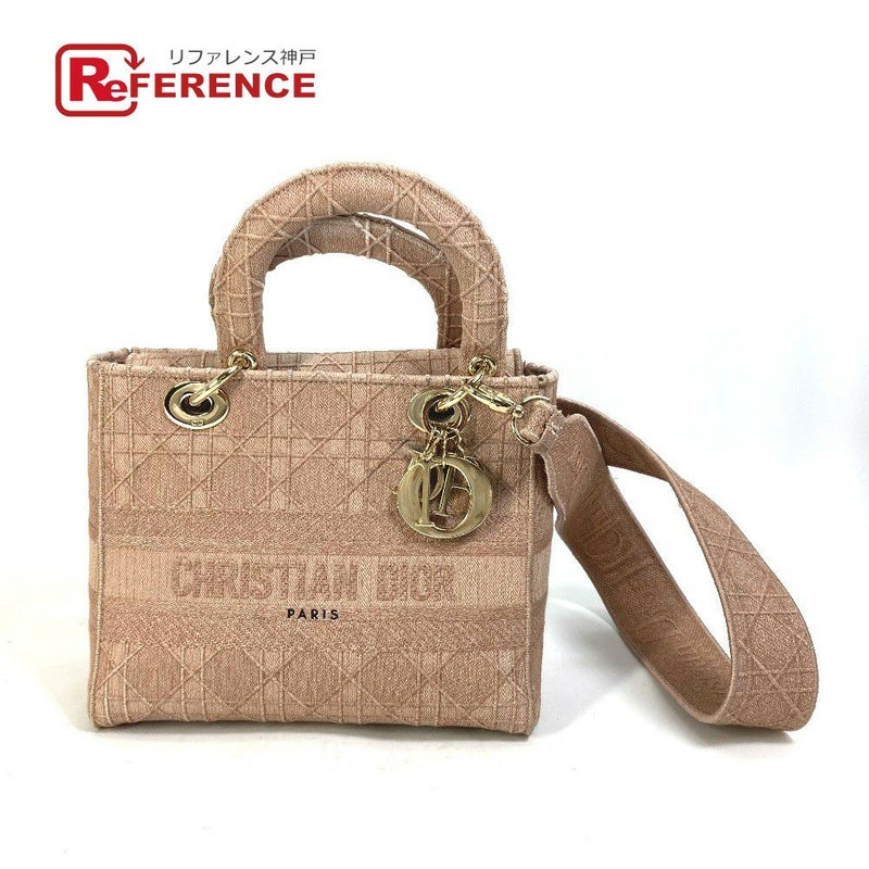 ディオール Dior ディオール M0565OWZA 2WAYバッグ ショルダーバッグ 斜め掛け LADY D-LITE ミディアム  カナージュ エンブロイダリー ハンドバッグ キャンバス レディース ピンク 【中古】