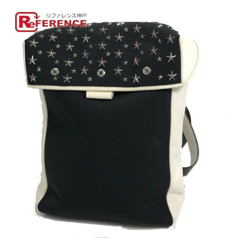 ジミーチュウ 黒色 JIMMY CHOO ジミーチュウ バイカラー スタースタッズ リュックサック レザー /ジャージ レディース ブラック×ホワイト 【中古】