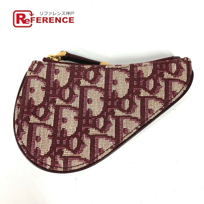 【美品】ディオール 赤色 Dior ディオール オブリーク サドル 財布 小銭入れ コインケース キャンバス/レザー レディース ワインレッド 【中古】