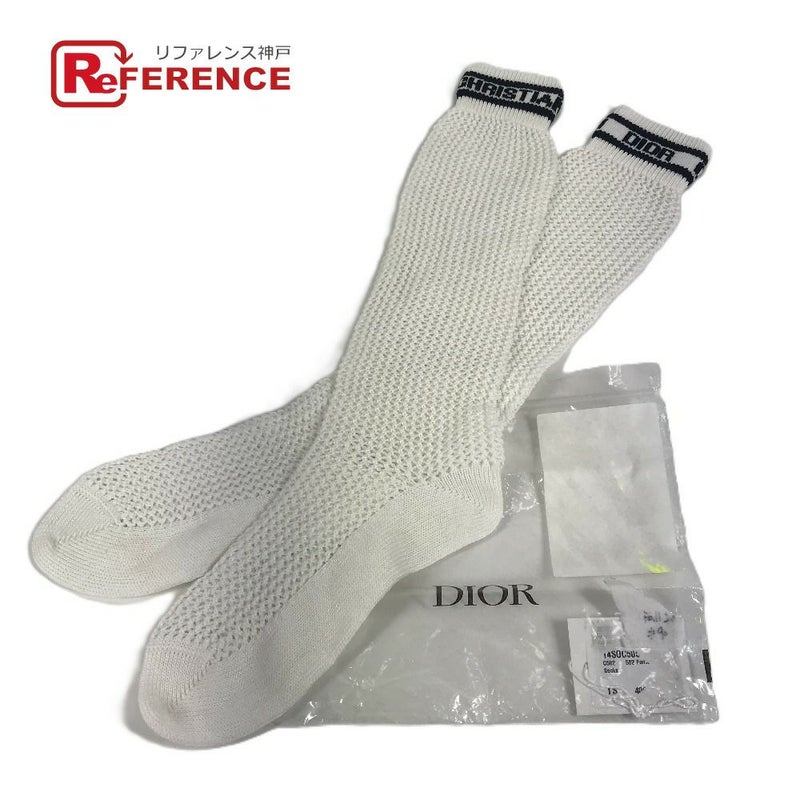 【未使用】ディオール 白色 Dior ディオール ロゴ ニーハイソックス ハイソックス アクセサリー バイカラー 靴下 コットン レディース ホワイト 未使用 【中古】