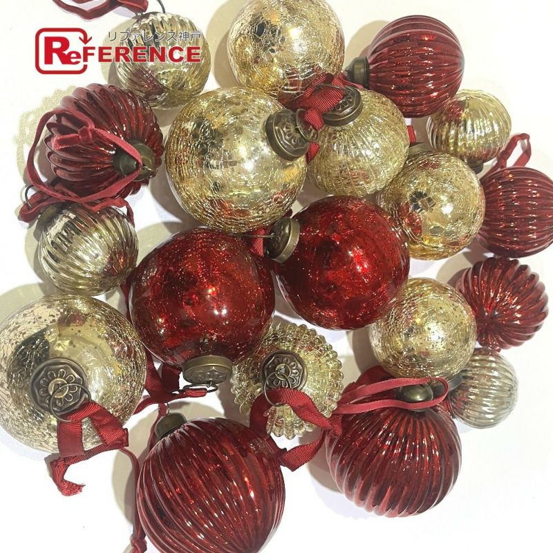 【新品同様】ノーブランド 金色 no brand ノーブランド ひび割れ加工 グラスボール 19点セット クリスマスオーナメント 大玉6個 中玉9個 小玉4個 雑貨 ガラス /プラスチック ユニセックス ゴールド 新品同様 【中古】