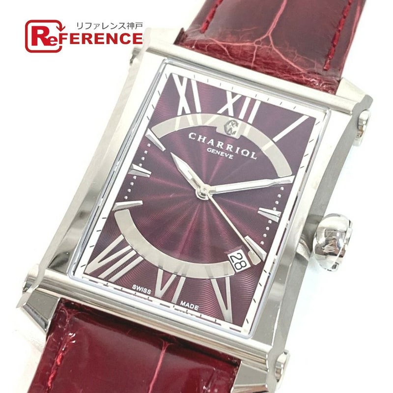 【未使用】シャリオール 紫色 CHARRIOL シャリオール CORLS.785.005 コロンブス メンズウォッチ ウォッチ 時計 革ベルト レザー 腕時計 SS /クロコダイル メンズ バーガンディー パープル 未使用 【中古】