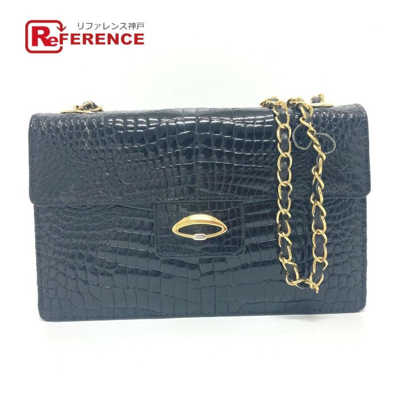 ノーブランド 黒色 no brand ノーブランド チェーンバック ショルダーバック カバン バック ショルダーバッグ クロコダイル レディース ブラック 【中古】