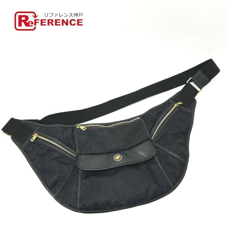 【中古良品】ハンティングワールド 黒色 HUNTING WORLD ハンティングワールド ロゴ ウエストバッグ ボディバッグ カバン バック ショルダーバック ショルダーバッグ レザー/ナイロン レディース ブラック 【中古】
