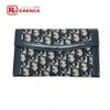 ディオール 紺色 Dior ディオール トロッター ジャガード ヴィンテージ フラップ ロングウォレット がま口 長財布 ジャガード レディース ネイビー 【中古】