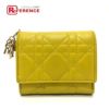ディオール 金色 Dior ディオール レディディオール カナージュ ロータスウォレット コンパクトウォレット 財布 ウォレット 3つ折り財布 レザー レディース イエロー ゴールド金具 【中古】