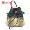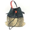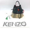 【中古良品】ケンゾー 黒色 KENZO ケンゾー 2SA805 2017年リゾートコレクション パンチング&パイソン柄 2WAY ハンドバッグ 巾着 リュックサック レザー レディース ブラック×ベージュ 【中古】
