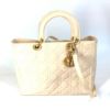 ディオール 薄茶色 Dior ディオール レディディオール LADYDIOR カナージュ カバン 2WAY ショルダーバッグ 肩掛け ハンドバッグ パテントレザー レディース ベージュ系 【中古】