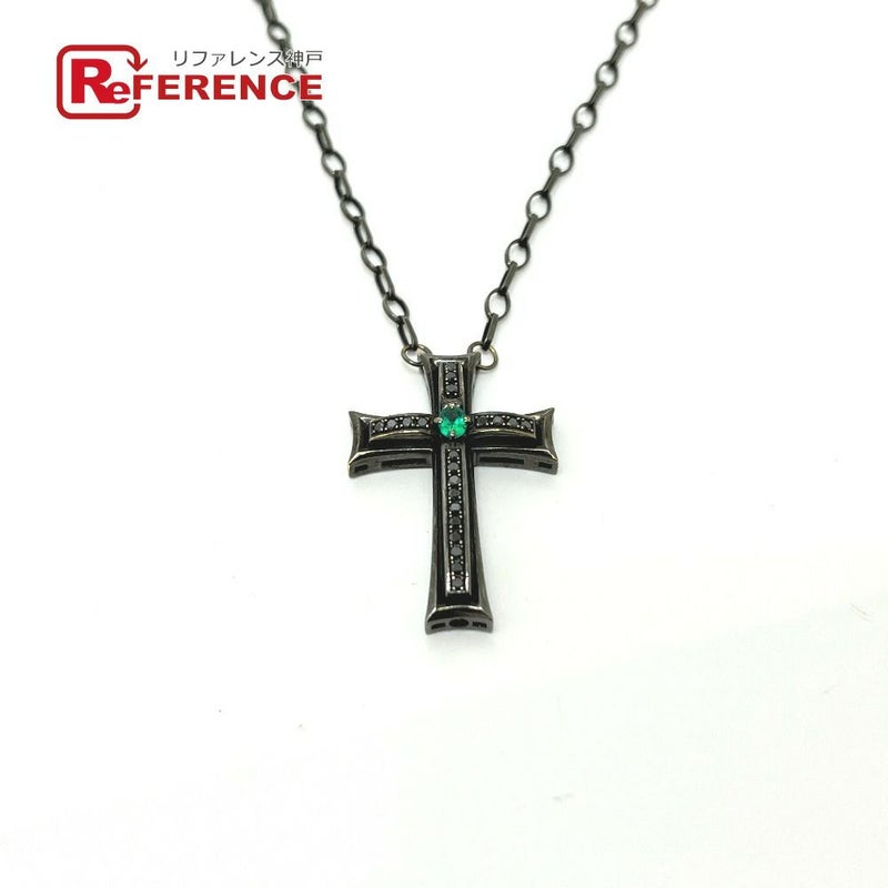 【中古良品】ヴァティックス 黒色 VARTIX ヴァティックス K10 ブラック加工 クロス エメラルド ブラックダイヤ チェーン アクセサリー ネックレス K10 ユニセックス ブラック 【中古】
