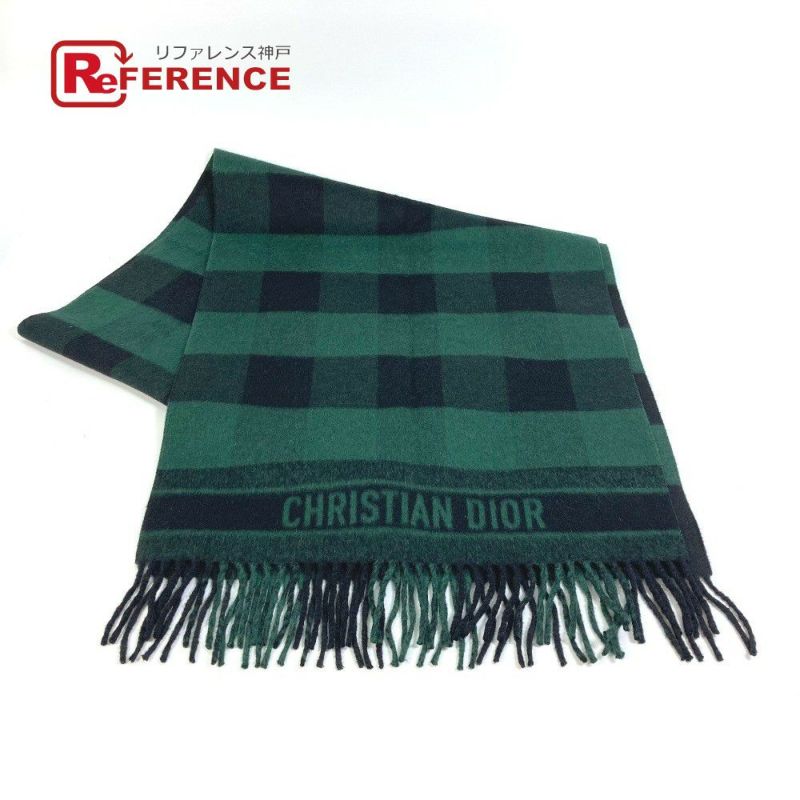 【新品同様】ディオール 緑色 Dior ディオール 95CHE200100 ロゴ フリンジ チェック柄 大判ショール マフラー ウール /アンゴラ レディース グリーン 新品同様 【中古】