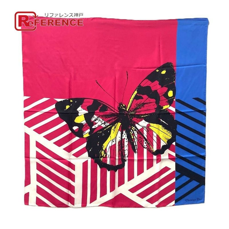 【美品】ディオール Dior ディオール 22ANP090I610 蝶 バタフライ スカーフ シルク レディース ピンク 【中古】