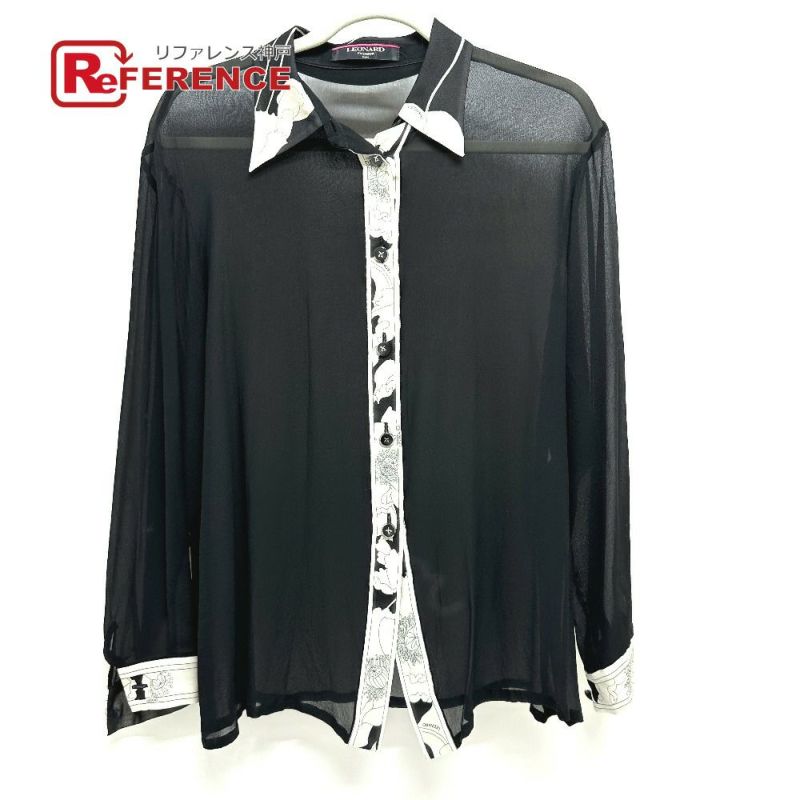 【中古良品】レオナール 黒色 LEONARD レオナール トップス アパレル シャツ ボタン 花柄 フラワー アパレル シースルー 長袖シャツ シルク レディース ブラック 【中古】