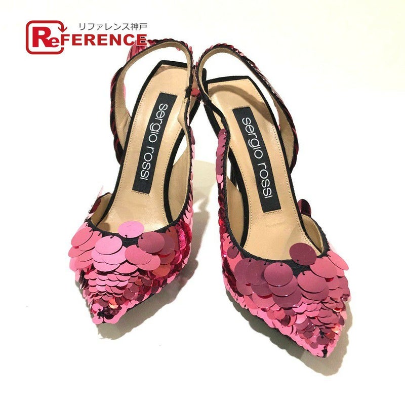 【未使用】セルジオロッシ 黒色 Sergio Rossi セルジオロッシ A82860 ハイヒール カバン スリングバッグ パンプス スパンコール レディース ブラック ブラック×ピンク 未使用 【中古】